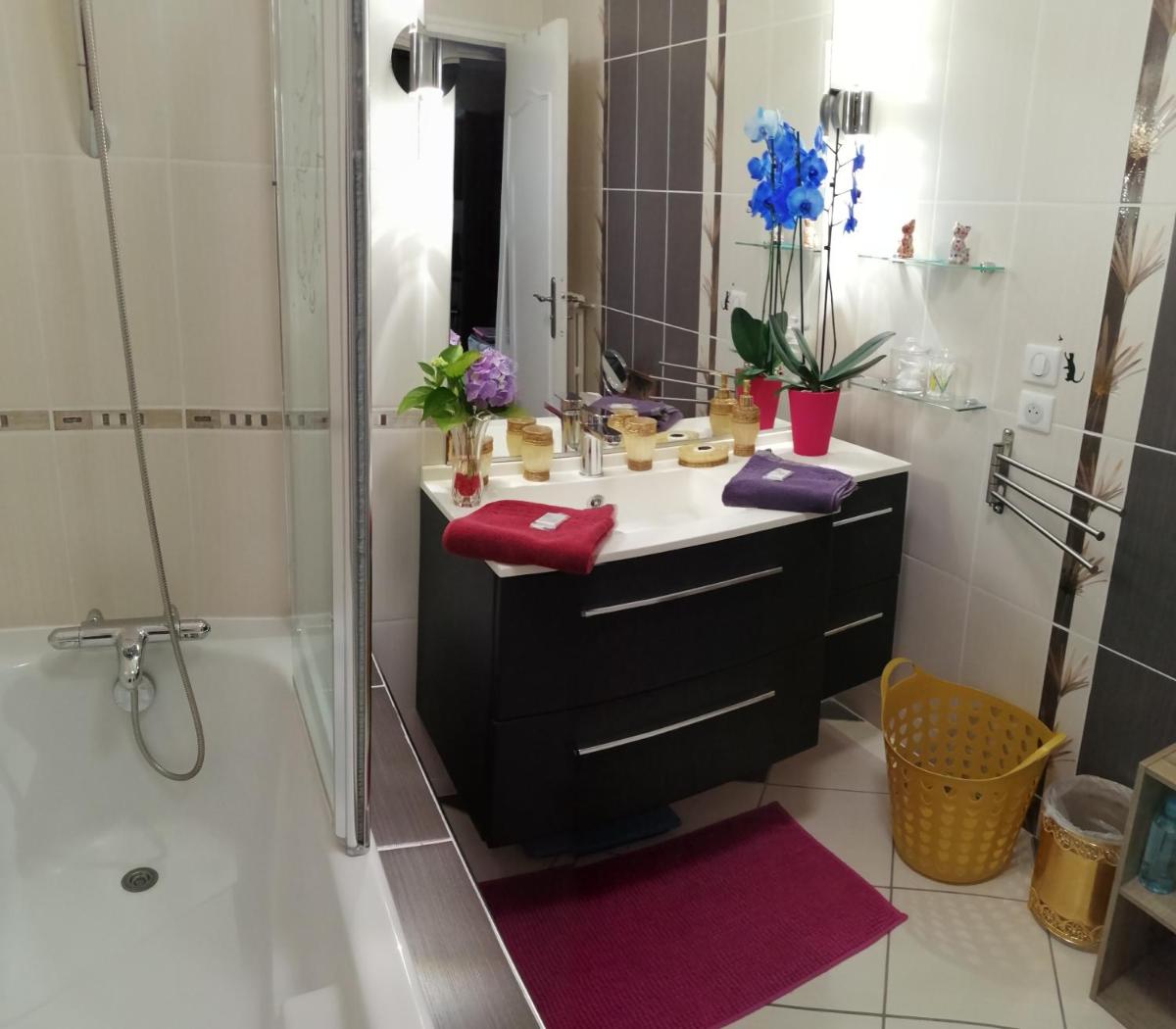 For those looking to unwind after a day's adventures, the apartment comes with a well-appointed bathroom featuring a luxurious bathtub, ensuring relaxation upon arrival. The inclusion of bathtowels and robes further enhances the guest experience, making the stay truly enjoyable.