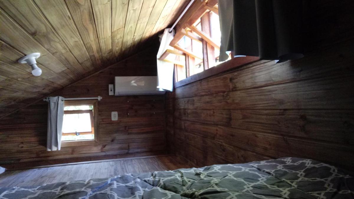 Tiny House II - Sítio dos Wolff, nestled in Gravataí, offers charming accommodations just 22 miles from Novo Hamburgo Bus Station and 23 miles from Beira Rio Stadium. This spacious chalet features a balcony, free private parking, and access to an outdoor swimming pool, an open-air bath, and a shared kitchen. Enjoy the comfort of a cozy, air-conditioned space comprising one separate bedroom, a well-equipped living room, a fully stocked kitchenette, and a private bathroom. Guests will appreciate the balcony offering scenic views and the convenience of free parking on-site. The chalet also includes towels and bed linens, making for a comfortable stay. Conveniently located near popular attractions such as Bourbon Country Theatre and Arena do Grêmio, this property caters to those seeking a tranquil retreat amidst nature's beauty. Just a short drive away lies Salgado Filho Airport, providing easy access to major destinations.