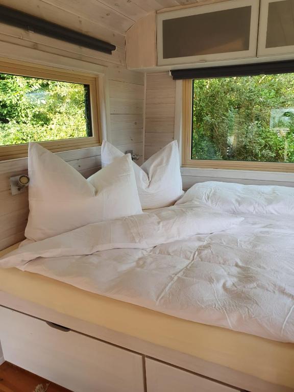 Tiny House Steirerbua offers free Wi-Fi connectivity, a satellite flat-screen TV, a fully equipped kitchenette including a refrigerator and stovetop, a balcony for outdoor enjoyment, and a private bathroom.