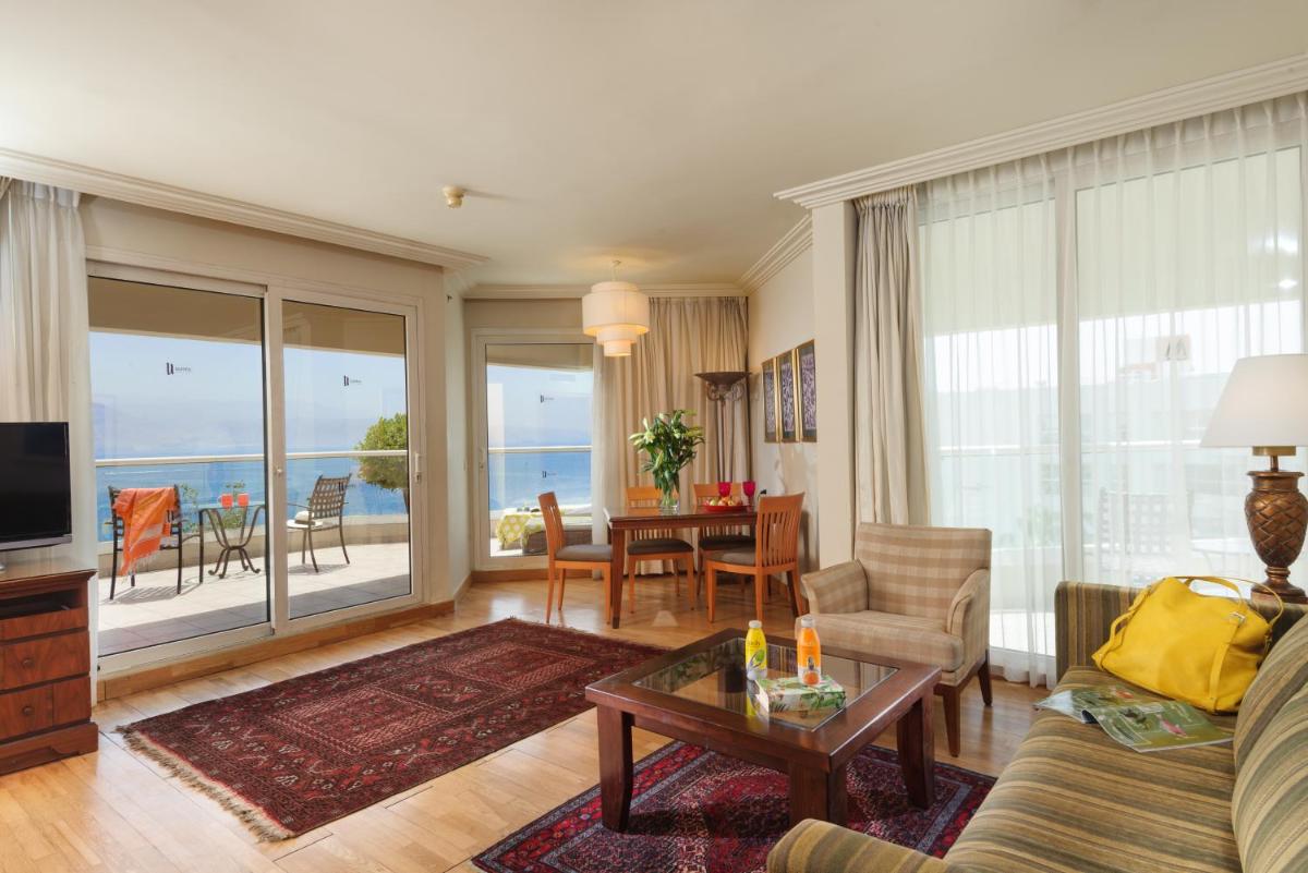 The Aria Hotel stands as a prime destination along the Red Sea coast, nestled near bustling Eilat Promenade and just a stone's throw from the lively shopping district. This luxurious establishment offers a variety of accommodation options, ranging from standard suites to superior ones boasting private balconies with breathtaking ocean views. Guests can indulge in the comfort of these suites while enjoying complimentary Wi-Fi, a flat-screen television, and access to a spacious balcony.