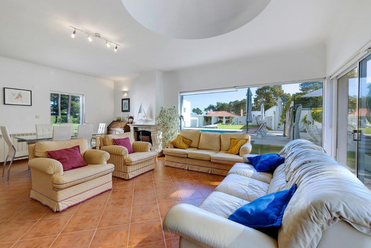 Guests can enjoy the outdoor swimming pool and garden at the villa.