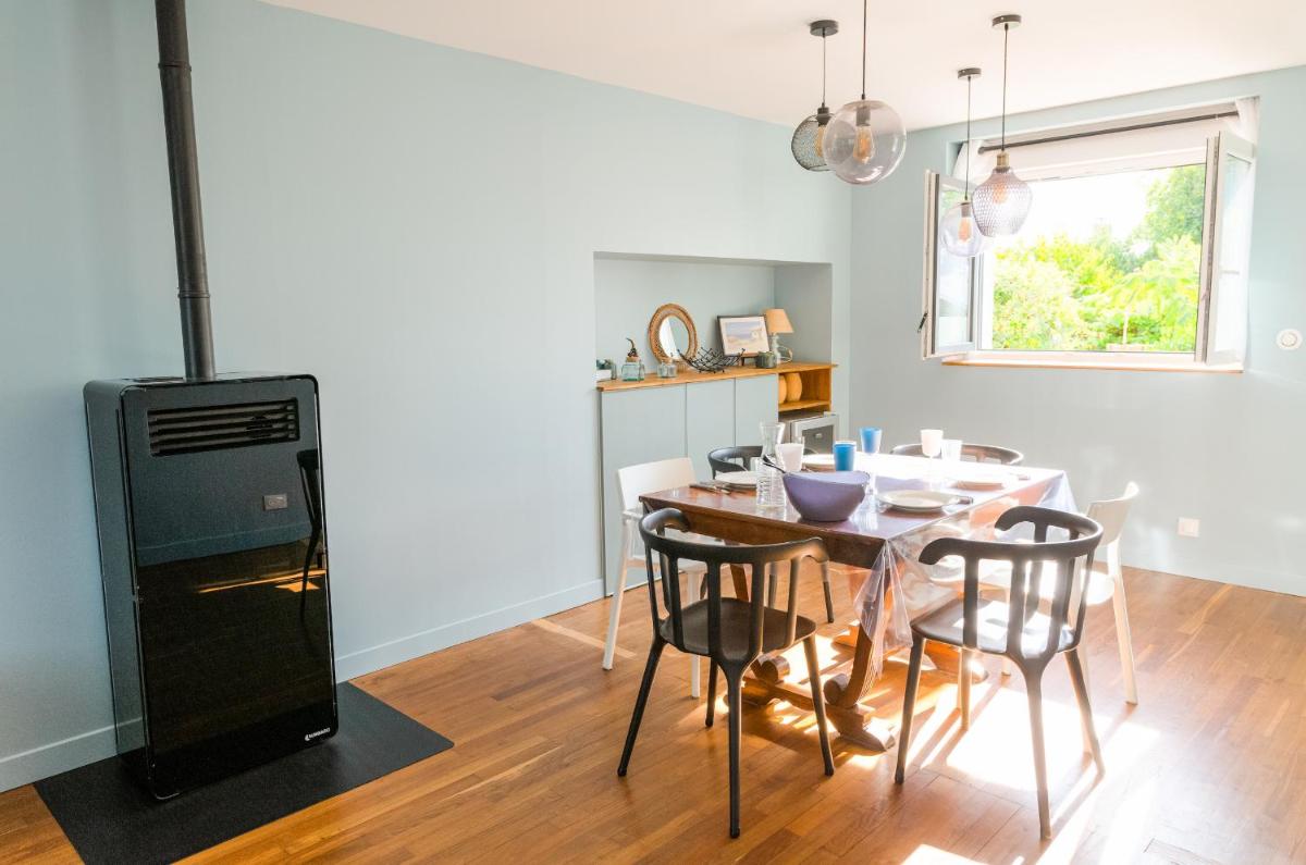The Vacances Bigoudenes holiday rental provides free Wi-Fi, free parking, non-smoking rooms, a spacious garden, and access to the entire place. It includes a fully equipped kitchen, a private bathroom with a bathtub, BBQ facilities, and a terrace offering scenic views.