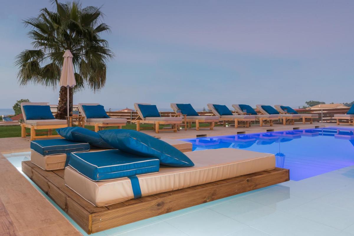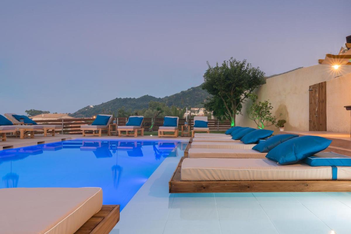 Venilia Apartments offers free Wi-Fi, on-site parking, an outdoor swimming pool with scenic mountain views, a fenced area for privacy, and a balcony with sea views.