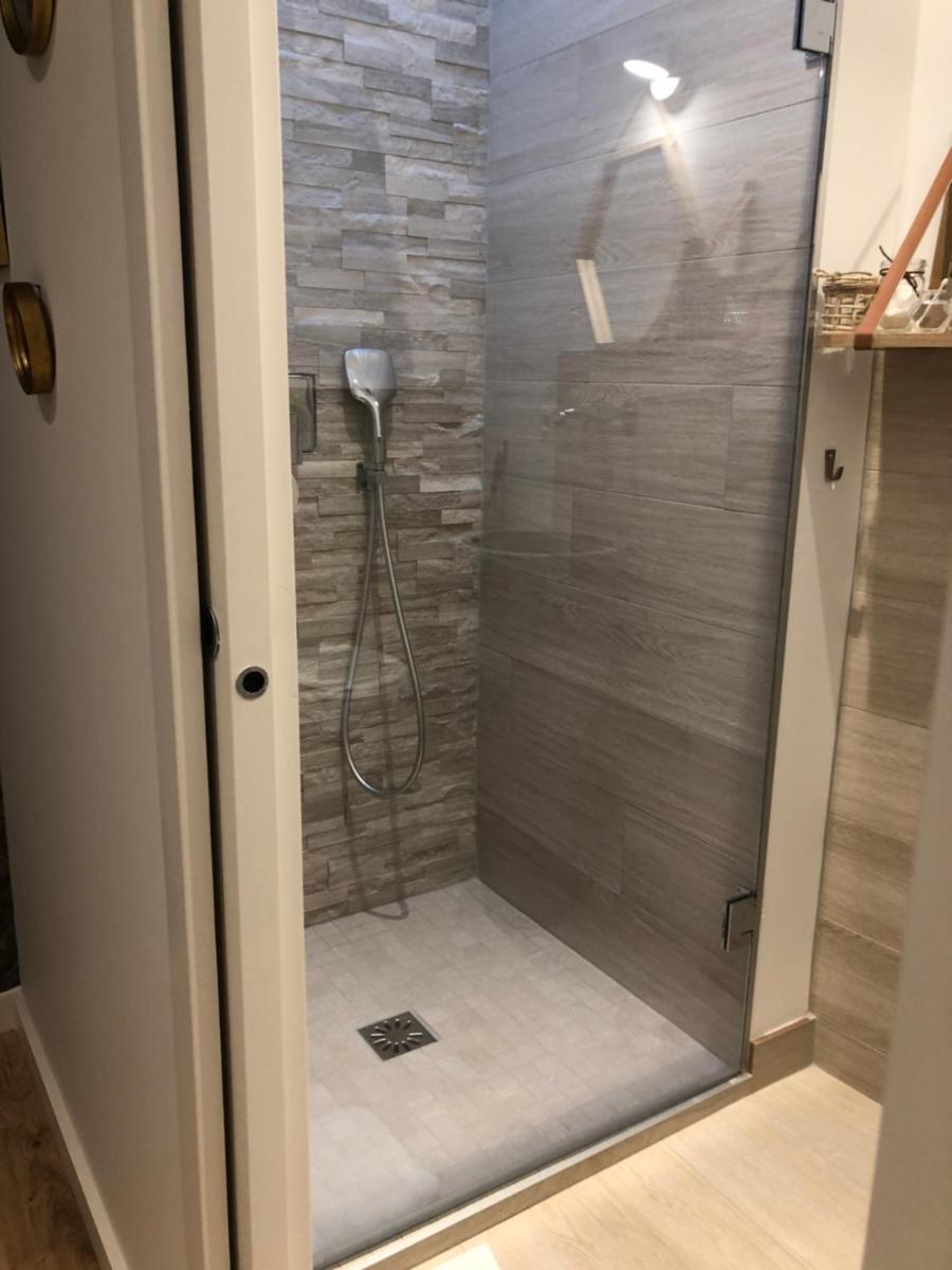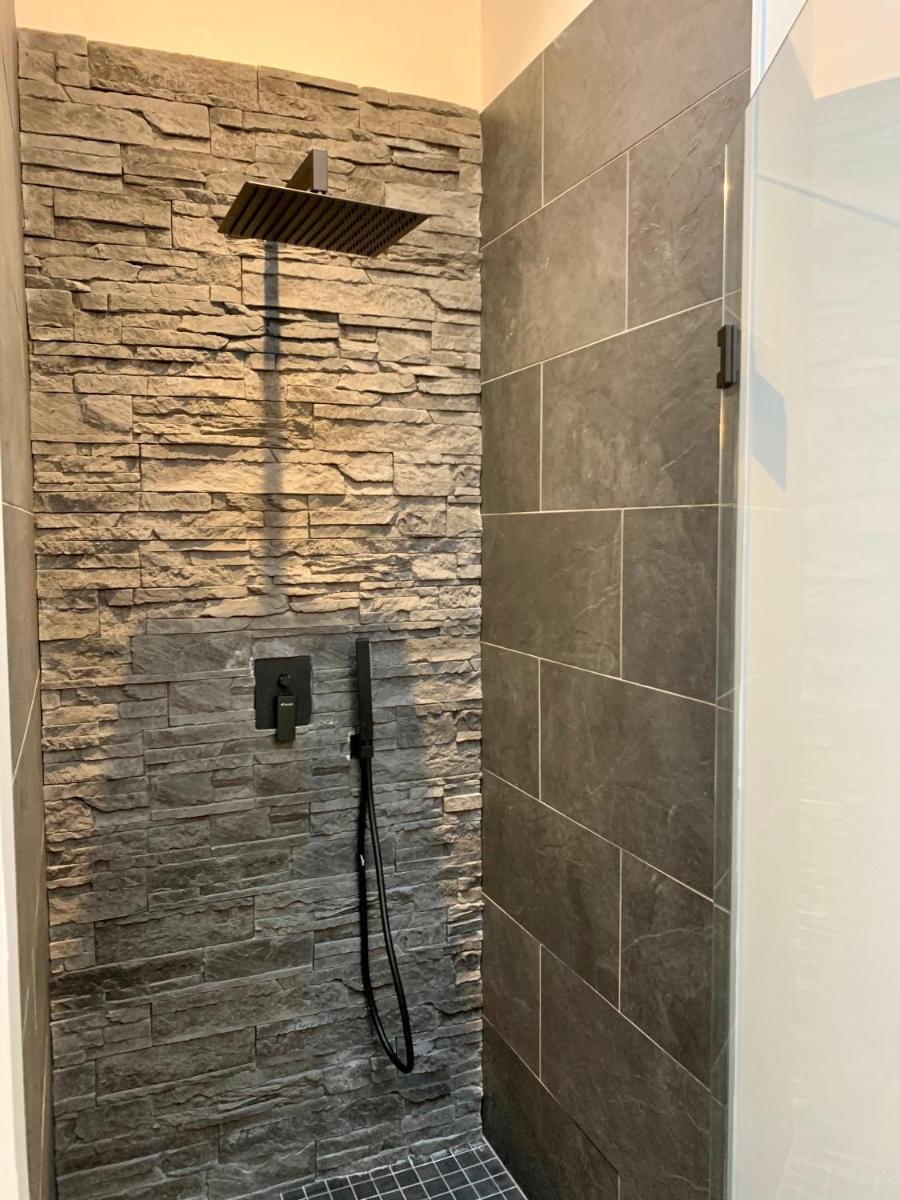 The shower is lovely, and the area is tranquil.