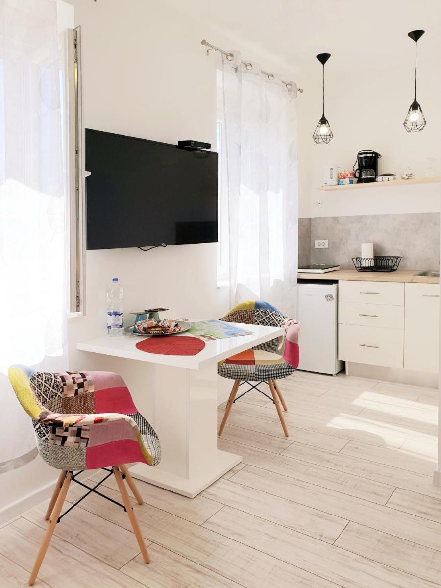 Vila Siega in Zadar offers comfortable accommodation with free Wi-Fi, air-conditioning, and parquet floors. Guests enjoy free on-site parking, a paid shuttle service, and luggage storage. Amenities include a washing machine, dining table, and outdoor furniture overlooking either the sea or city. Conveniently located 15 miles from Zadar Airport, the property is near Maestrala Beach and within walking distance to the Palace of the Governor General. Boating is available nearby. Renowned for its prime location, clean rooms, and easy beach access, this property consistently receives high ratings for convenience, room quality, and accessibility.