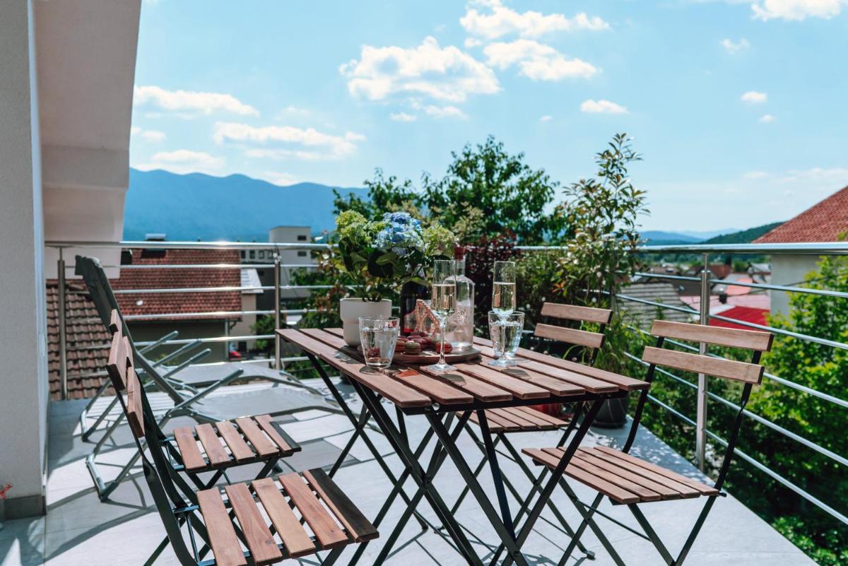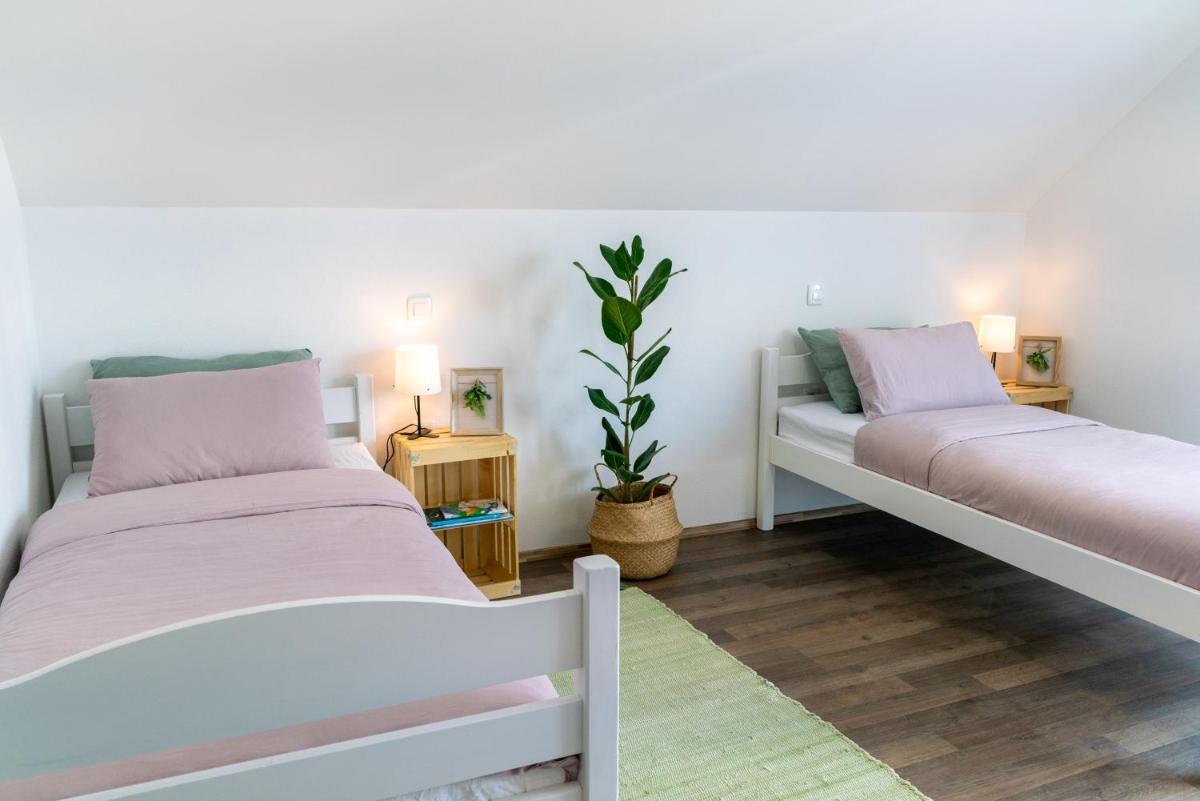 The villa's proximity to Ljubljana's train station makes travel plans effortless, allowing visitors to reach major cities and attractions quickly. Just over an hour away by car lies Ljubljana Castle, a must-visit site steeped in history.