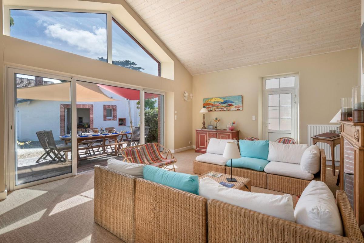Located in Préfailles, approximately 300 meters from the beach, this villa for 11 guests offers a serene retreat set amidst scenic coastal landscapes. Just a 12-minute stroll from Port Meleu Beach, visitors will find themselves surrounded by nature's beauty. The villa, featuring 6 spacious bedrooms, a well-equipped kitchen boasting a dishwasher, oven, washer, and bathtub, provides ample space for relaxation and entertainment. Private parking ensures convenience during stays, making it easy to navigate the local area. Guests enjoy access to two bathrooms, each equipped with a hairdryer, ensuring comfort throughout their stay. The villa’s location near La Source Beach makes for ideal beach time, while Chatelets Beach is within walking distance, offering further opportunities for leisurely strolls along the shoreline. Conveniently situated near the Saint-Nazaire Train Station, residents have easy access to transportation options, allowing them to explore nearby attractions such as Pornic Castle and the Heritage Museum Ecomusée. The property boasts a total floor area of 180 square meters, providing ample living space for all guests. Additionally, the villa offers free on-site parking, making it ideal for those who prefer to park privately rather than relying on public spaces. Whether exploring the nearby golf courses or enjoying the tranquility of the surrounding gardens, every aspect of this villa caters to the needs of its guests.