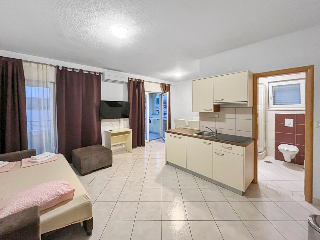 Villa Luna, located in Trogir, offers comfortable accommodation featuring an indoor terrace and free private parking. Guests can enjoy Wi-Fi throughout their stay. On clear days, they may choose to bask by the outdoor fireplace or relax in the surrounding garden. Each unit includes a well-equipped kitchen with amenities such as a microwave, toaster, and safety deposit box, along with satellite TV, ironing facilities, desks, and seating areas furnished with sofas. Refrigerators, stovetops, and kitchenware are also included. For those seeking relaxation, a coffee machine and kettle are available. The property features a spacious terrace overlooking the sea, making it perfect for enjoying the views. Nearby attractions include Copacabana Beach, Put Tatinje Beach, and Labadusa Beach II. The villa is conveniently situated just 5 miles from Split Airport, offering a complimentary shuttle service upon request. Additionally, Villa Luna provides non-smoking rooms, pet-friendly accommodations, hot tubs, sea-view balconies, and airport shuttles.