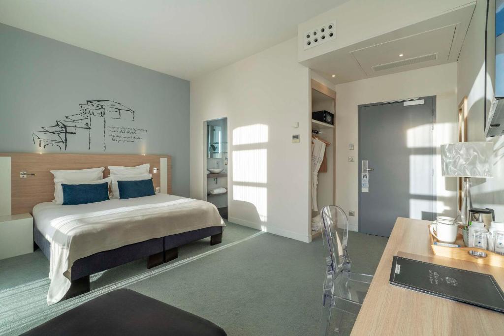 The Best Western Villa Saint Antoine is conveniently situated near numerous historical landmarks such as Notre-Dame Church and the Maison du Muscadet. For couples looking for romantic settings, this location has garnered high praise with an impressive score of 9.4 out of 10 for a two-person stay. In addition to being close to popular attractions, the property offers free WiFi, pet-friendly accommodations, wheelchair accessibility facilities, and a wide selection of activities suitable for different interests. Parking is conveniently located nearby, ensuring ease of arrival. Overall, this enchanting destination promises an enriching vacation experience.