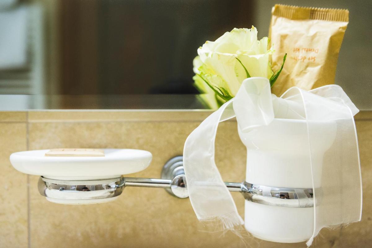 Rooms at the Sonnino feature wood-beam ceilings and terracotta flooring. Each comes with air conditioning and a mini-bar.