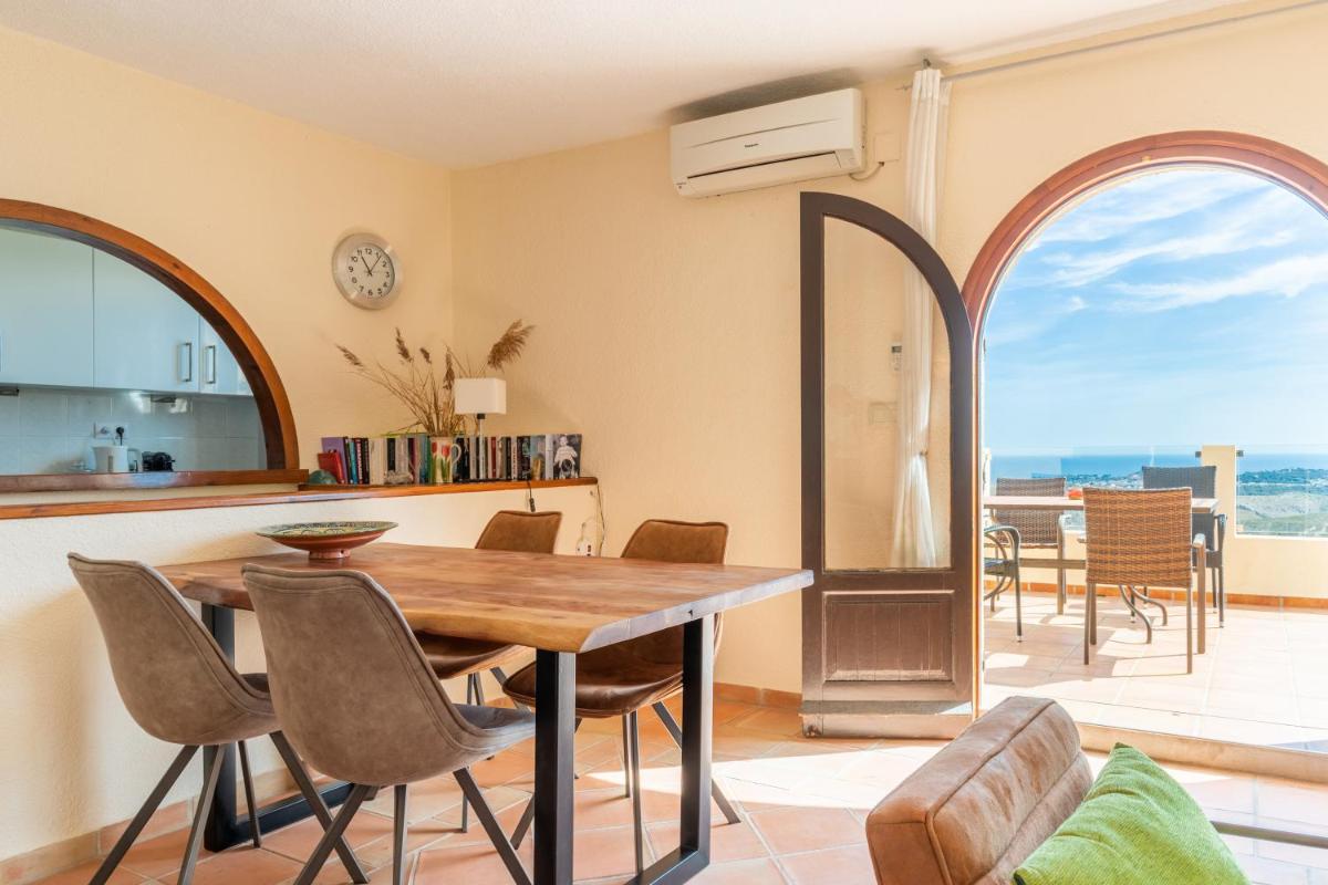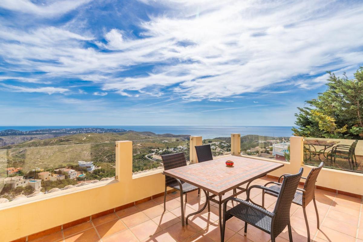 The villa's spacious balcony provides breathtaking mountain views, perfect for enjoying the surroundings. Outdoor seating areas allow for relaxation and socializing. Villa Vista Ibiza is just 2.9 miles from Moraig Beach, offering easy access to the beachside lifestyle. For those seeking adventure, Aqua Natura Park lies approximately 44 miles away, while Aqualandia is slightly further at 47 miles. Notably, Alicante-Elche Miguel Hernández Airport is 97 miles from the property, providing convenient transportation options.