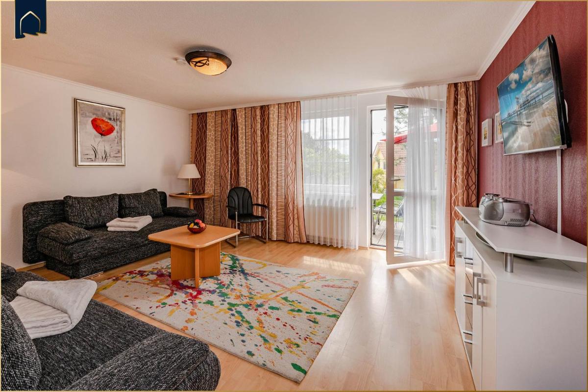 Waldsiedlung Waldhaus App 4.2, located in Korswandt, offers a spacious 1-bedroom apartment featuring a fully equipped kitchen with a dishwasher and oven. Enjoy free Wi-Fi and a balcony offering scenic views of the surrounding landscape. Situated near several attractions such as Mussems, museums like Museum Villa "Irmgard," Muzeum Latarnictwa i Ratownictwa Morskiego, Die wunderbare Welt des Badens, Usedomer Technikausstellung, Hangar 10, Hans-Werner-Richter-Haus, Muzeum Rybołówstwa Morskiego, Muzeum Historii Twierdzy Fort Zachodni, and Muzeum Obrony Wybrzeża, visitors can explore various cultural offerings within easy reach. For those seeking outdoor activities, nearby amenities include Baltic Hills Golf Usedom and Ahlbeck Pier. With its proximity to Heringsdorf Airport, guests have convenient transportation options available. The apartment measures 51 square meters and comes complete with a private bathroom equipped with a shower. As an added convenience, it features free parking on-site and pet-friendly conditions, ensuring a comfortable stay for both residents and their furry companions.