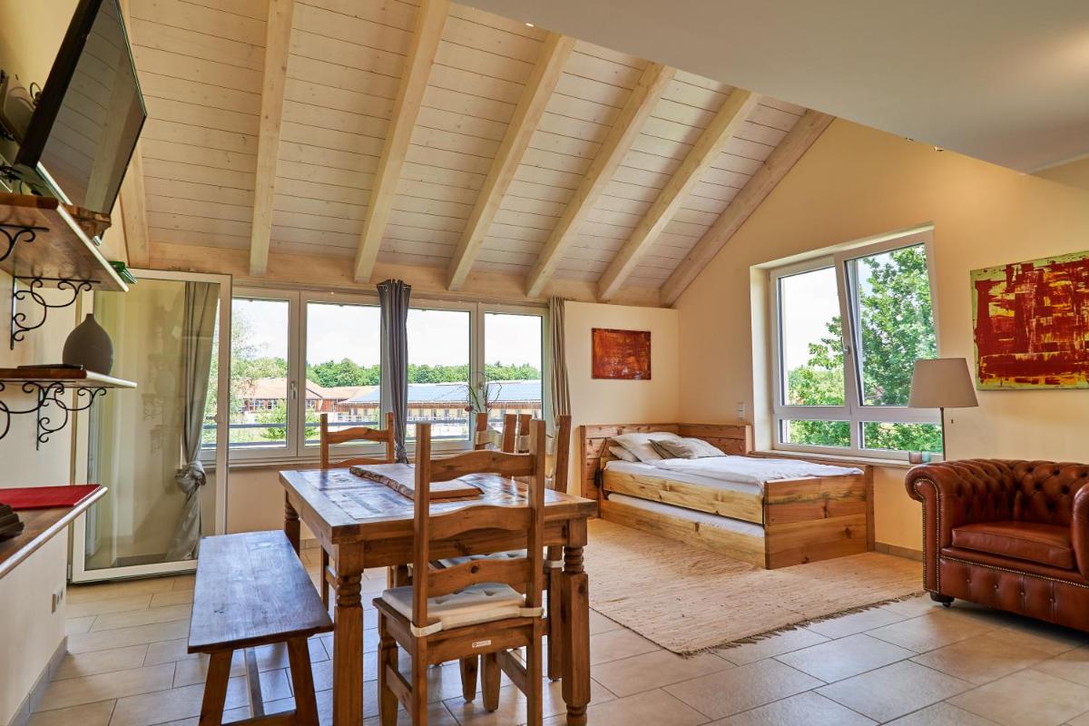 Ferienwohnungen Gut Mischenried, located in Weßling, approximately 15 miles from Munich, offers fully furnished apartments. Each unit features amenities such as a flat-screen TV, DVD player, and CD player. Units may also have terraces or balconies. Kitchens come equipped with a dishwasher, oven, toaster, and refrigerator. Private bathrooms with bathtubs and showers are included in every room. Guests can enjoy a barbecue, coffee maker, and baby equipment upon request. Free Wi-Fi, free parking, non-smoking rooms, facilities for disabled guests, airport shuttle services, family rooms, and accommodations suitable for pets are available. The closest airports are Munich Airport (30 miles), Bad Wörishofen (31 miles), and Bad Tölz (27 miles). The property is situated near various attractions, including the Bauernhofmuseum Jexhof (4.8 miles), Museum Fürstenfeldbruck (9.0 miles), Schichtwerk (4.0 miles), and Zeit+Raum (9.5 miles). Additionally, nearby parks include Gut Mischenried (0.1 miles).