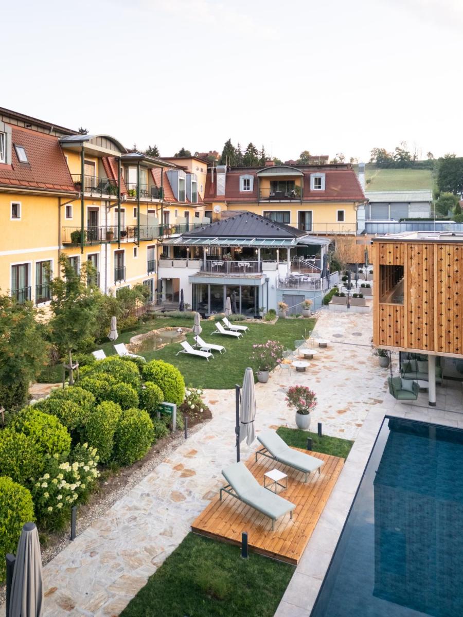 Nestled in the heart of Gamlitz, just a brisk 2-minute stroll from the bustling main square, the Weinlandhof stands as a charming 4-star accommodation nestled along the picturesque South Styrian Wine Road. This family-owned establishment boasts a tranquil setting where guests can unwind amidst lush gardens and sparkling water features.