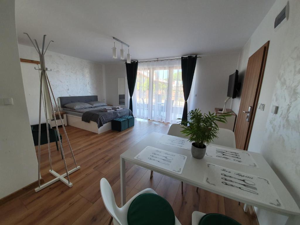 Willa Alexandra II in Międzyzdroje boasts quiet street views, offering accommodations with a terrace. Guests appreciate its accurate descriptions and photos, featuring free Wi-Fi, private parking, outdoor seating, and amenities such as a dishwasher, microwave, toaster, and coffee machine in the kitchenette. Rooms include a wardrobe, flat-screen TV, private bathroom, bed linen, and towels. Heating facilities enhance comfort. Popular attractions nearby include Miedzyzdroje Beach, Miedzyzdroje Walk of Fame, and Wolin National Park. Couples rate it highly for its convenient location, giving it an impressive 9.0 score for a two-person stay.
