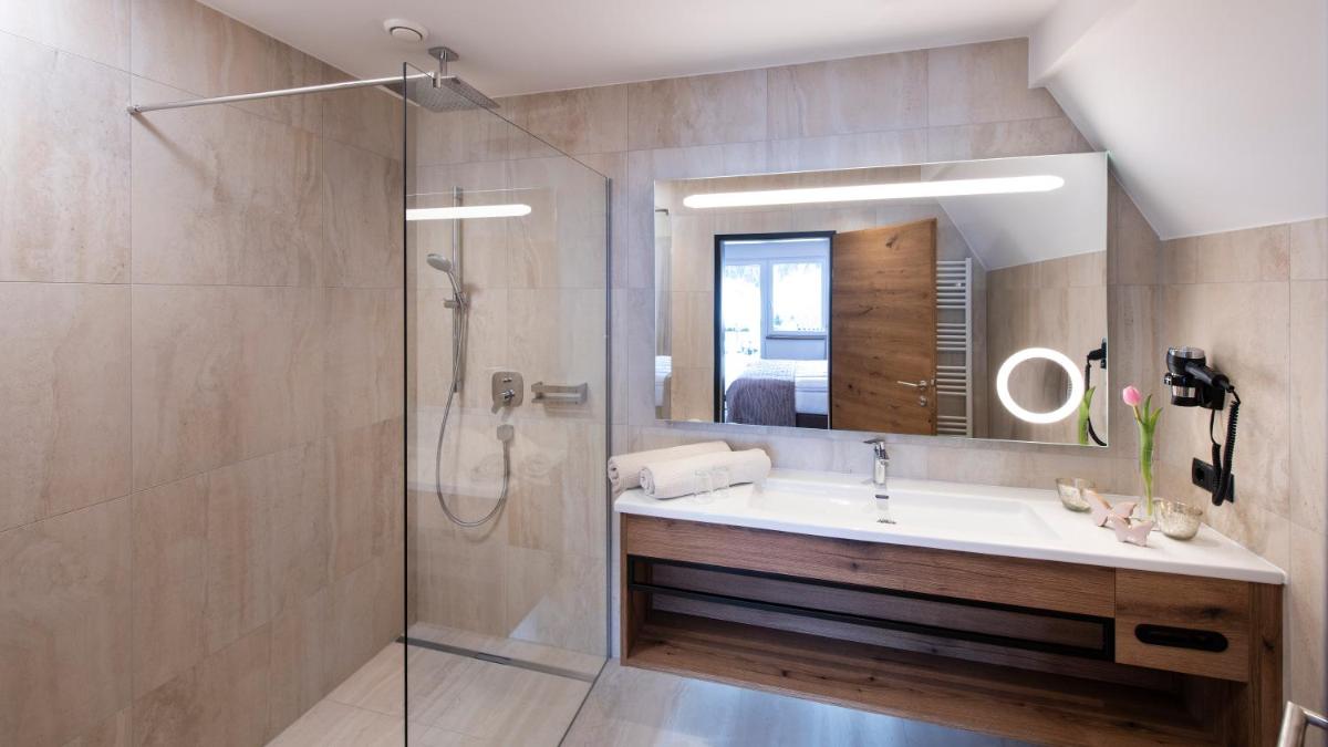 Furnished in an elegant Alpine style, the suites at Wohlfühlhotel Innertalerhof come with a living room with satellite TV, a bathroom, and a welcome basket including sauna towels.