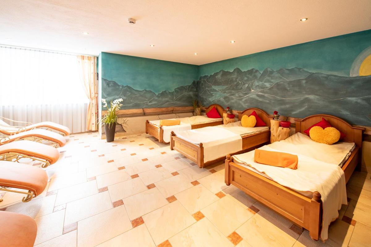 The Innertalerhof’s spa area includes a sauna, steam bath, salt water steam bath, infrared cabin, and Kneipp pools. The relaxation area features water beds and panoramic water views.