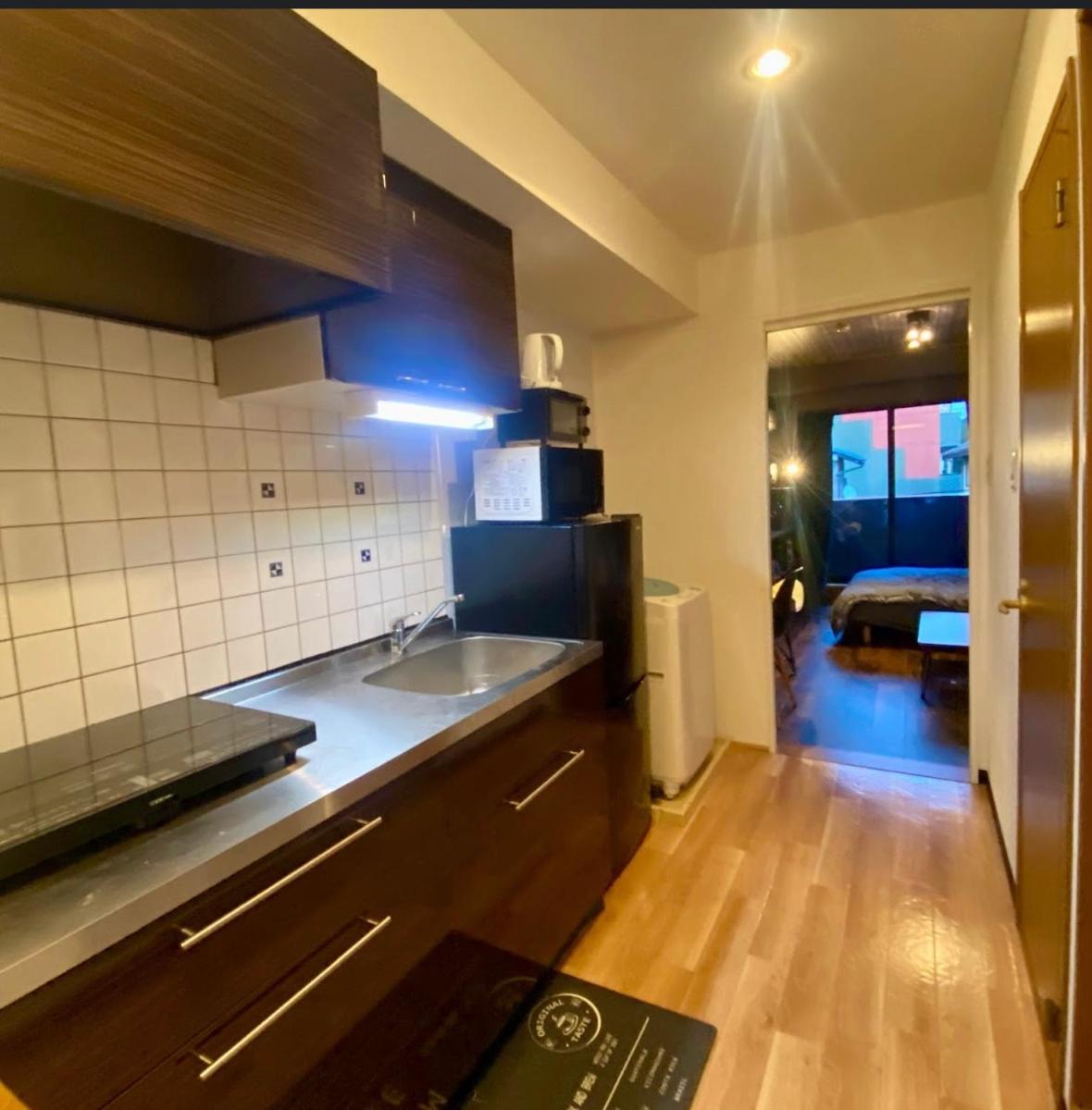 The room was a one-room apartment type with a kitchen, was larger than a business hotel, and I liked that the toilet and shower room were separate.