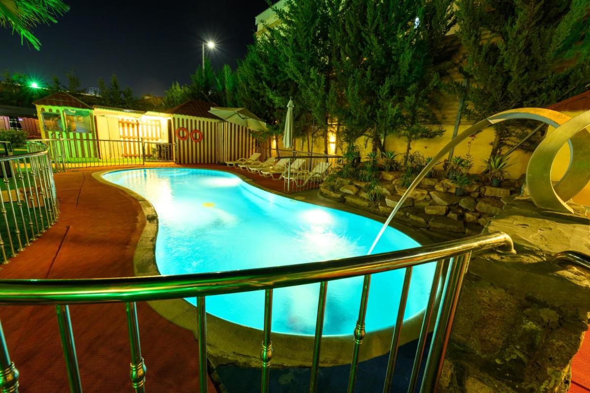 Zaman Homeland Hotel, situated approximately 4 miles from Jouri Mall in Taif, boasts luxurious accommodations with a stunning outdoor swimming pool, free private parking, lush gardens, and comfortable terraces. Guests can enjoy various amenities such as a water park, sauna, hot tub, and a diverse menu featuring both traditional and halal options. Room services are available, ensuring convenience during stays. Each room comes equipped with modern comforts including air conditioning, seating areas, flat-screen TVs with satellite channels, safety deposit boxes, private bathrooms with bidets, complimentary toiletries, and hair dryers. Some rooms feature additional amenities like electric tea pots and kitchens equipped with fridges and microwaves. The property's spacious common areas offer ample space for relaxation and socializing. Staff members are fluent in Arabic and English, ready to assist guests 24/7. Conveniently located near key attractions like Saiysad National Park and King Fahad Garden, the hotel is just 5.5 miles from the property. For those traveling by plane, the Ta'if Regional Airport is approximately 14 miles away, offering easy access to the destination. The hotel also provides a paid airport shuttle service for added convenience.