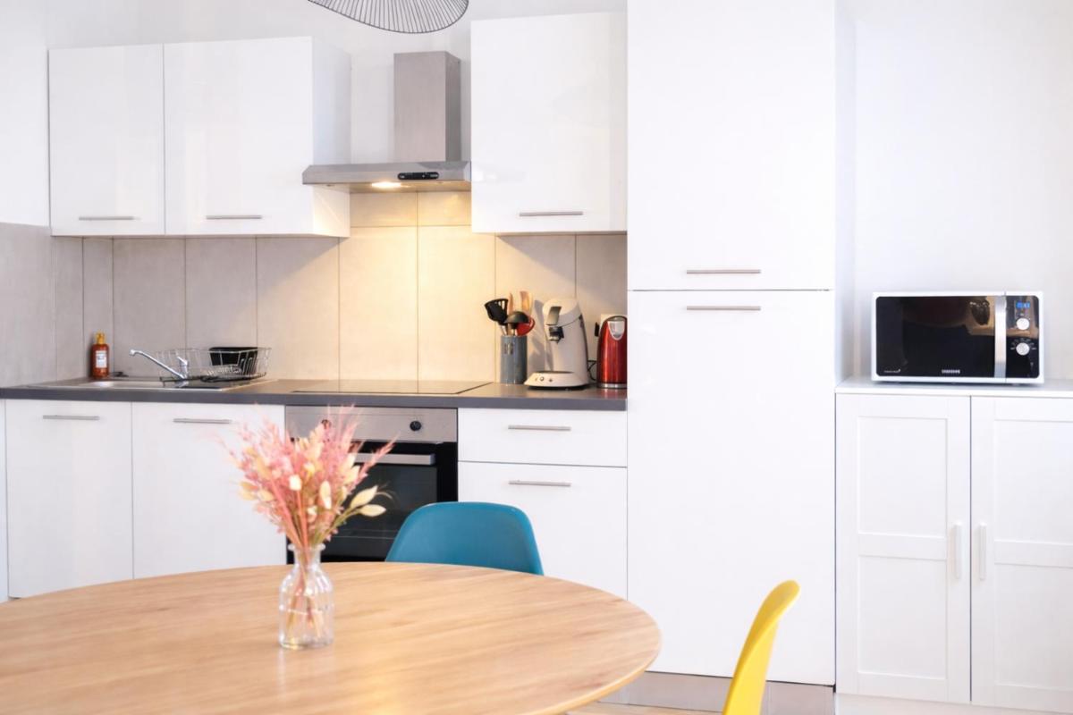 The Zum Milhüsa - Rénové en 2021 offers an authentic living experience within easy reach of key destinations in Mulhouse. Situated just 13 minutes' walk from Mulhouse Train Station and conveniently situated at 1.7 miles from Parc Expo Mulhouse, this modern one-bedroom apartment boasts state-of-the-art facilities designed to enhance your stay. Equipped with a satellite flat-screen TV, a washer/dryer, and a fully equipped kitchen featuring a dishwasher and oven, guests will enjoy a well-stocked culinary haven.