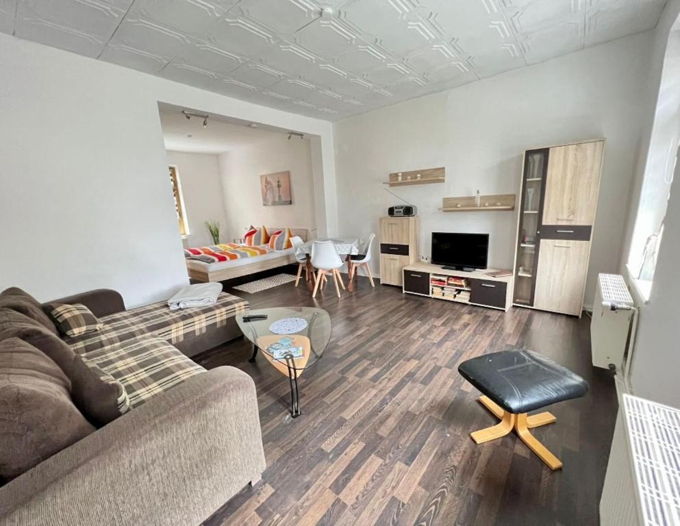 The spacious Haus "Georgina" - Ferienwohnung 2 in Sassnitz on Rügen features two bedrooms, a private bathroom, fully equipped kitchen, and a comfortable seating area...