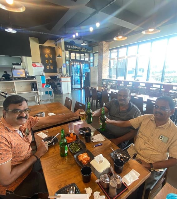 There are two pickup locations available:1. Jeju-si, Seogwipo-si2. Seongsan IlchulbongAdditional activities at these locations include photo stops, visits, guided tours, sightseeing, walking, hiking (approximately 1 hour), and local dining opportunities.Pickup from these locations can also involve visiting Jeju Folk Village, where guests may participate in guided walks or explore the village itself.Additionally, there is a possibility of taking breaks for lunch during the trip, with an estimated duration of approximately one hour.The itinerary includes a visit to Seongeup Green Tea Village, which will last approximately forty minutes. Guests should note that this information is subject to change due to various factors such as weather conditions, availability of transportation, etc.As for drop-off locations, both Seogwipo-si and Jeju-si are possible destinations. Main stops might have additional services, while other stops could offer scenic drives or simply pass-by experiences.Please keep in mind that the details and timings mentioned here are subject to change based on specific circumstances. |