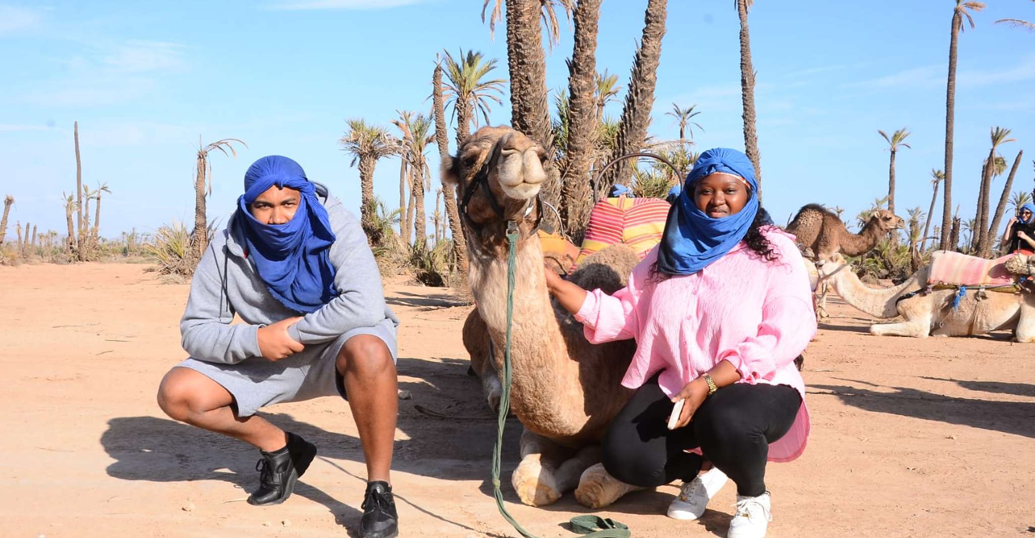 The Palm Desert features lush palm groves, creating a breathtaking juxtaposition against the stark terrains of the Jbelites desert.