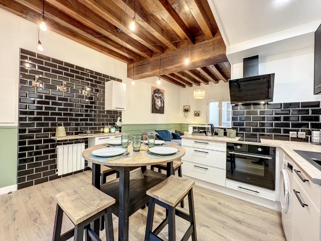 The charming Le Saint Nicolas apartment in Troyes, offering convenient access to popular attractions such as the Superior School of Design, Troyes Town Hall, and the Aube Prefecture, boasts an inviting interior featuring a spacious bedroom, modern living space, and well-equipped kitchen with ample dining area...
